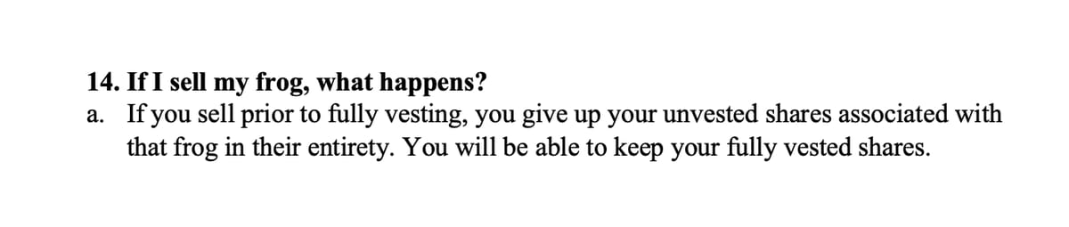 4. Future Share Distribution: Regarding the potential for future share distributions, Pons makes it clear that there are no guarantees for future distributions to those who buy Frog NFTs after the announcement.