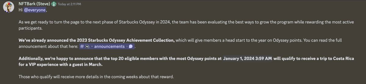 Starbucks Odyssey, known for its unique approach to integrating NFTs with customer loyalty, has continually evolved since its inception. The program has already distributed over 60,000 Stars, launched ten Journeys, held three Benefit Selection Periods, and hosted several exclusive guests on its Discord channel. However, the Costa Rica trip stands out as the most ambitious reward yet.